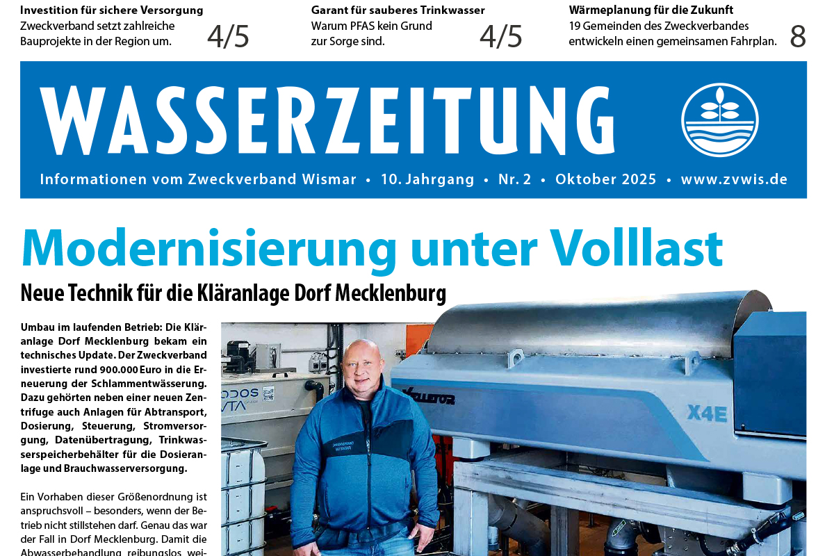 In dieser Wasserzeitung lesen Sie unter anderem über Neubau- und Modernisierungsmaßnahmen sowie über die Möglichkeiten einer Ausbildung beim Zweckverband Wismar.